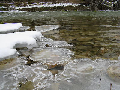 The river was beautiful under the fresh blanket of snow and the surrounding forest was the same. I got different satisfaction from today's outing. I didn't feel the need to force the issue. I dealt with it early on and decided to accept this day as a means to an end. Today would officially mark the end and demise of the 09 Ontario Fall/Winter Season for me. I decided to accept it and not go kicking and screaming.